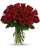 Choose from Six, Twelve, Eighteen, Twenty-four or Thirty-six premium roses in a glass vase. Enjoy the classic design of roses and greens or leave a note if you prefer we include baby's breath or other filler.