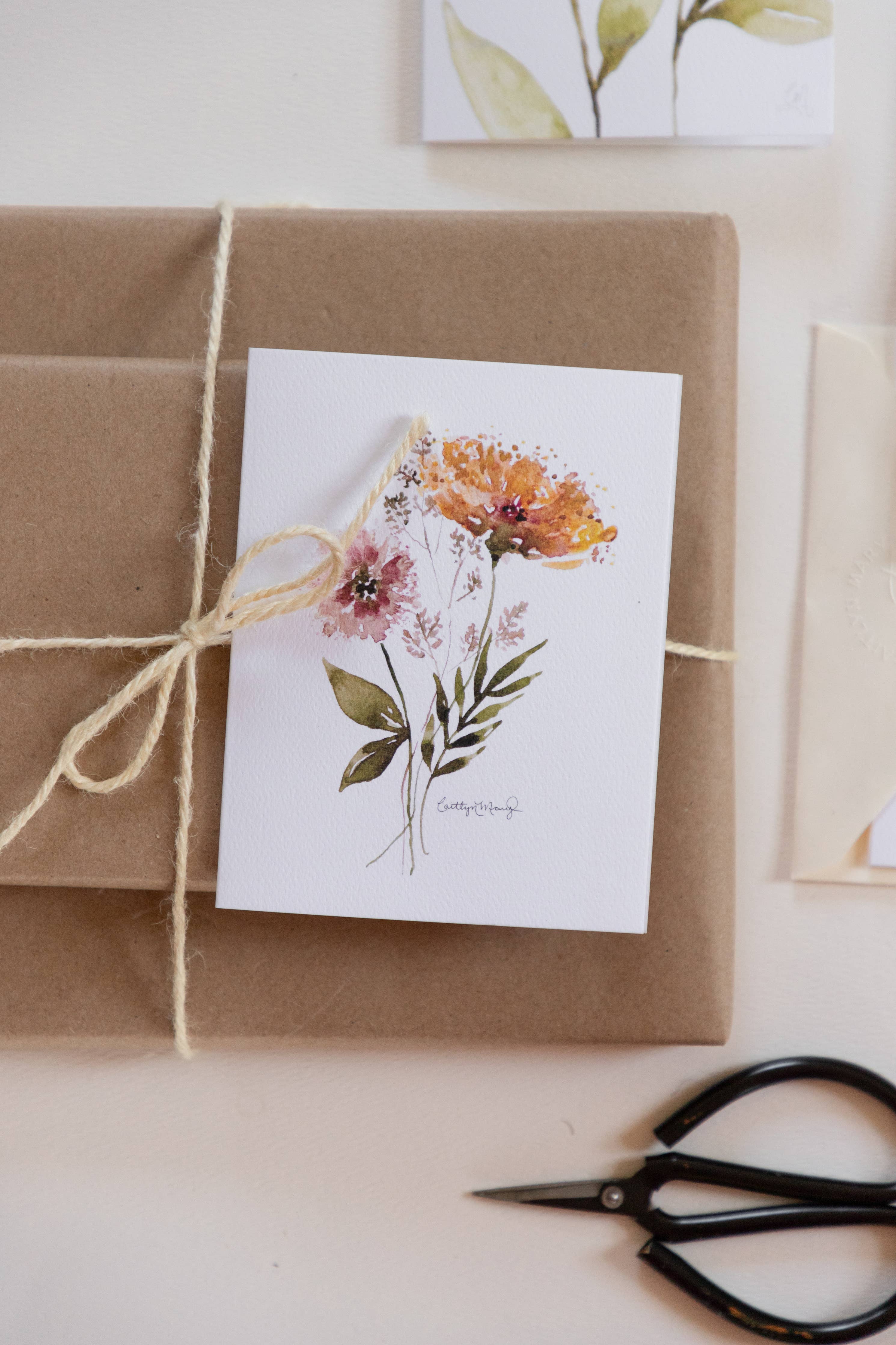 This is a tasteful, abstract line art design that was pulled from the artist's journal of blind-contour wildflower drawings. Blank inside to add your own sentiment. Perfect for any occasion! This is an A2 size card, accompanied by a hand-embossed envelope. All art cards are printed on a soft watercolour paper at a locally owned, small print shop in Trenton, Ontario.