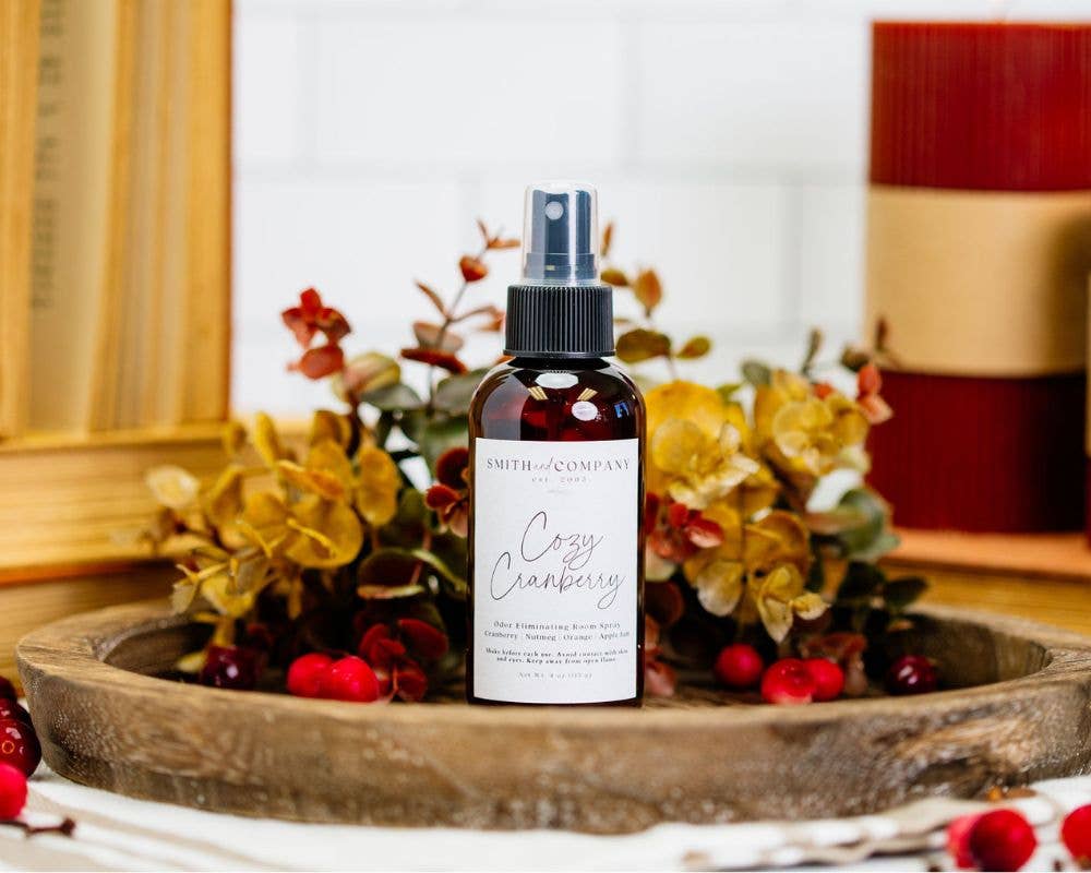 Delight in the blend of cranberry, nutmeg, orange, and apple jam that you'll find in Cozy Cranberry from our Hello Autumn collection. This playful scent captures your favorite outdoor aromas, evoking the joy of crisp Autumn days and the wonder of changing seasons. *Similar to “Spiced Cranberry” from past collections but with an extra twist! Info about our NEW Odor Eliminating Room Spray: Smith and Company's Odor Eliminating Room Spray fights against pesky odors! Our cutting-edge technology doesn't just mask odors—it neutralizes them with state-of-the-art, naturally-derived odor attacking enzymes. Say goodbye to smoke, sweat, pet, and bathroom odors, and hello to your favorite Smith and Company scents! Plus, it's eco-friendly, vegan, and cruelty-free. This product is also non toxic, Phthalate-free, and Paraben-free. Freshen up with a playful twist! This product is designed to be sprayed in rooms and/or on linens; it is not intended for personal care use such as deodorant or perfume.