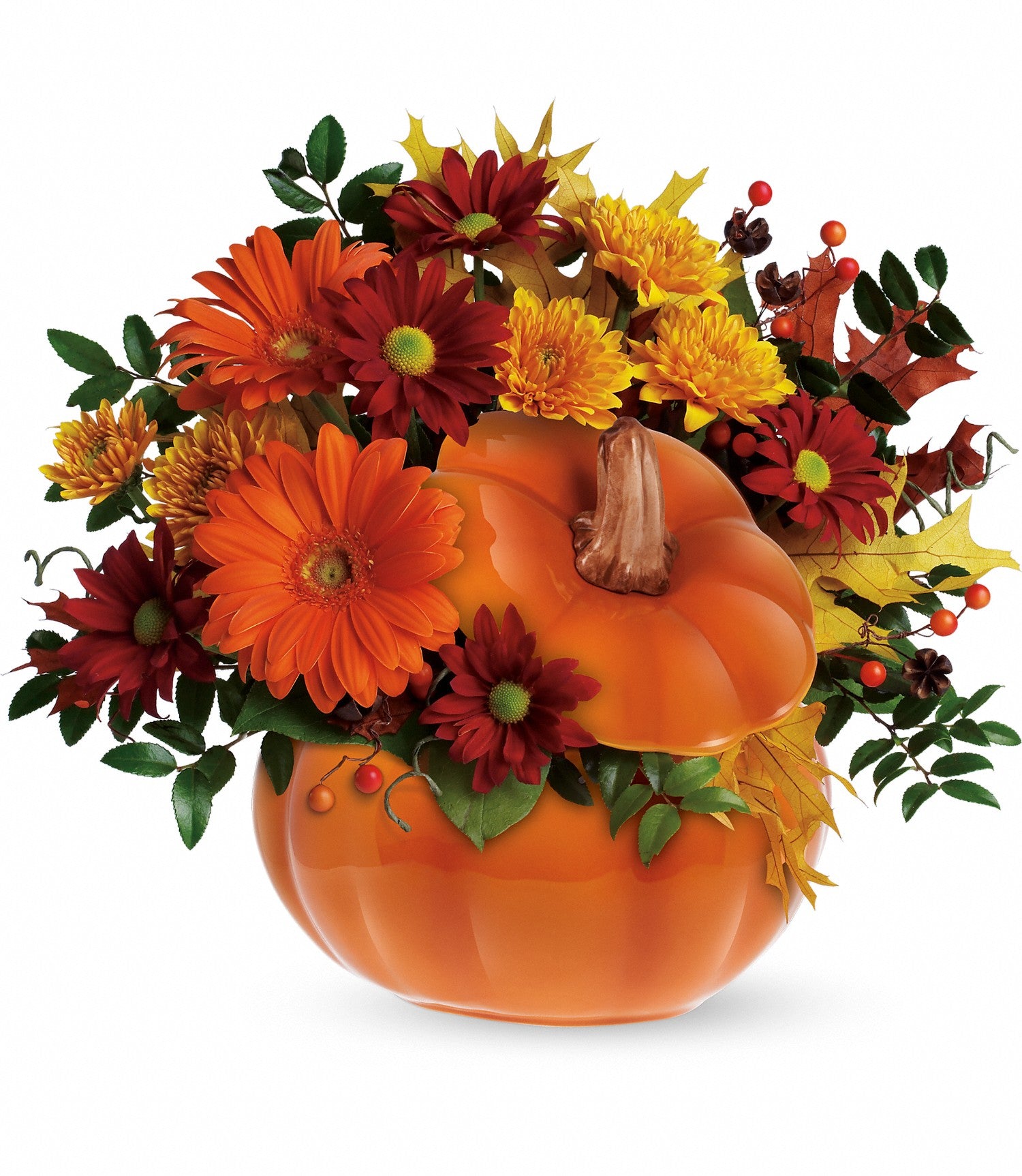 Perfect for a fall centerpiece, birthday or Halloween party, this flower-filled ceramic pumpkin is a real cutie-pie.