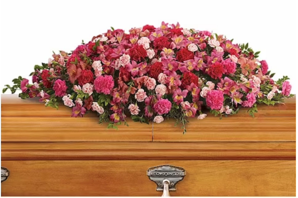 As a tribute to a special person who has passed, this magnificent cascade of pink floral favorites is a radiant testament of profound and lasting love.