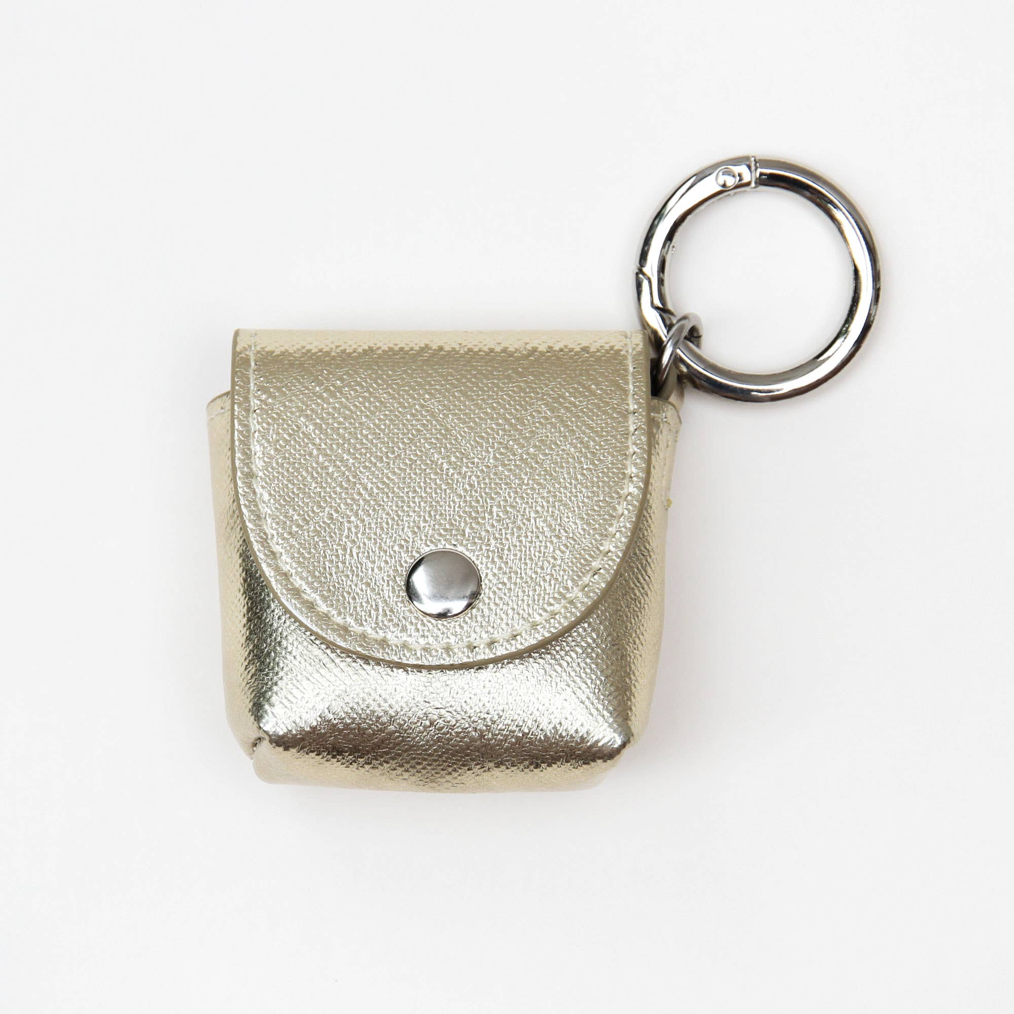 Handy leather look case for ear pods or small items in gold with popper closure and O ring clip. Outer: PU; Inner: Polyester L65 x W75 x D30 mm