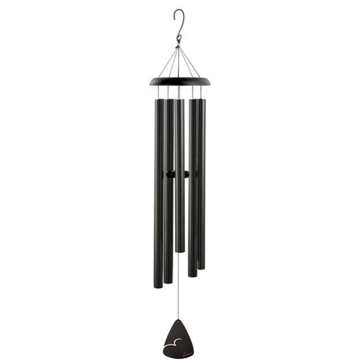 Chime has 5 heavy walled, center pinned tubes that emit a soothing and serene sound. Durable powder coated finish, all aluminum construction, and strung with industrial cord. Includes an adjustable striker.