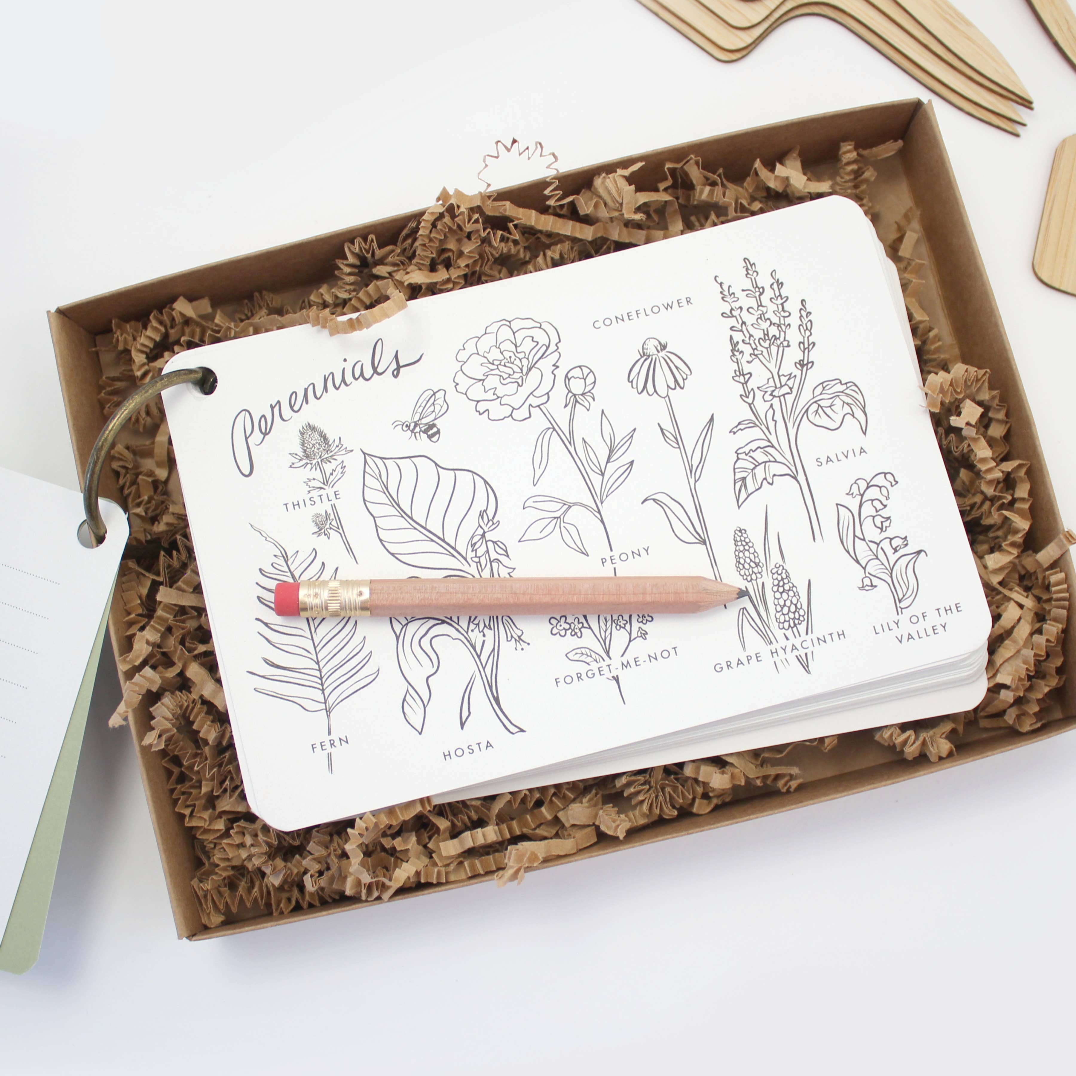 The Gardening Journal is the perfect gift both aspiring and expert gardeners. Plan out your garden and keep a record of what you've planted, noting what is successful each year. With plant illustrations throughout and six wooden plant markers, this keepsake journal is both practical and beautiful for Mother's Day, Birthdays, or everyday gifting.